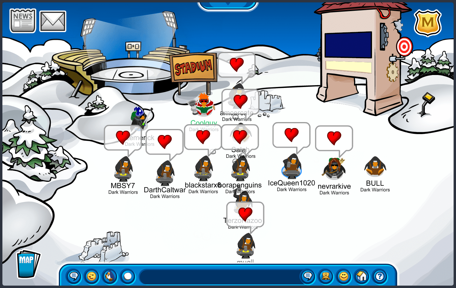 This morning we logged onto Club Penguin Army Battleground on the server Battleground for our O’berry Takeover event. We logged onto the Stadium where we started our event. After sending several tactics and creating different forms, we then chose to move to the Snow Forts where we continued our event. After spending some time at the Snow Forts, we chose to end our event. Thank you to everyone that attended!